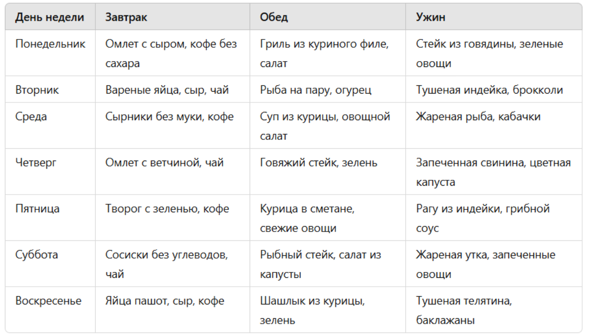 Меню на неделю для кремлевской диеты