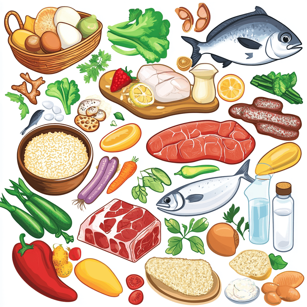 Рыба. Нежирные виды (треска, судак, хек) — отварные, тушёные или слегка обжаренные без панировки. Копчёная, солёная и жирная рыба запрещены.