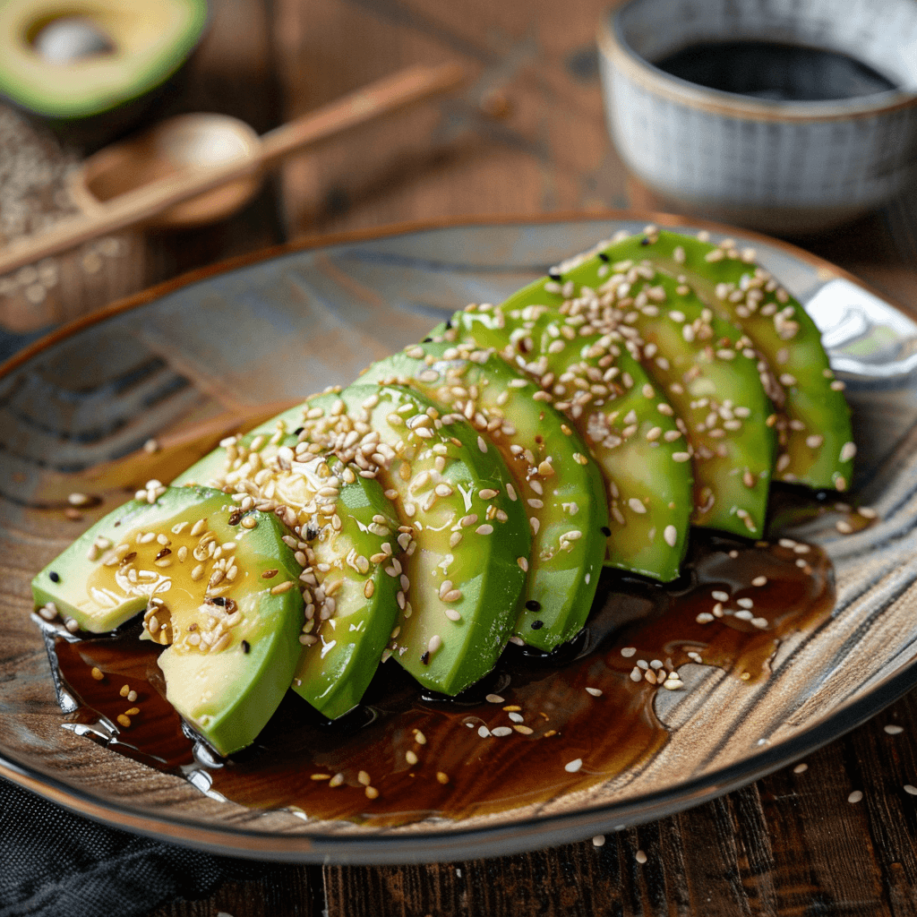 Татаки из авокадо в кунжуте с соевым соусом