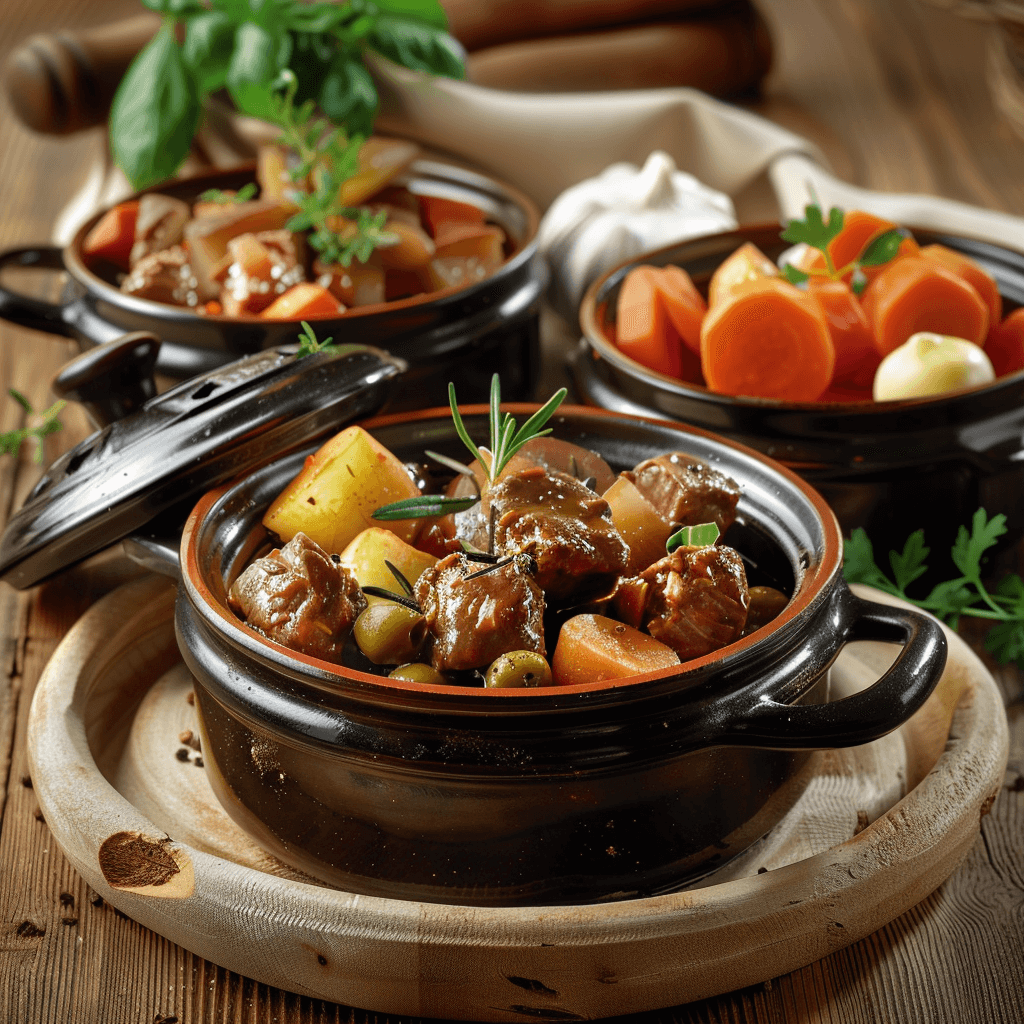 Говядина с картофелем и луком в горшочках