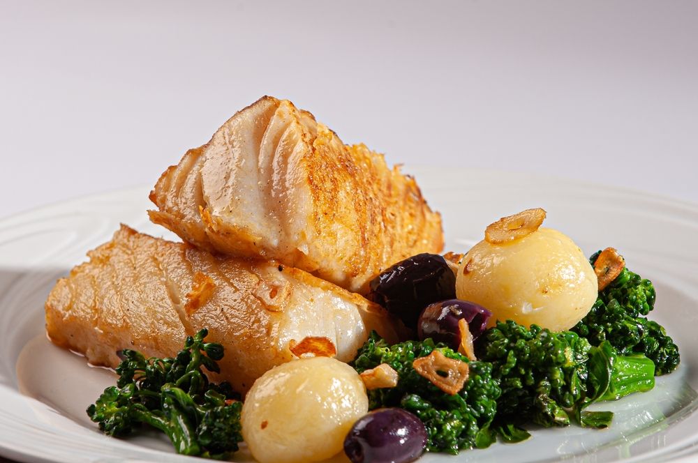 Треска в соусе мисо со шпинатом и эдамаме