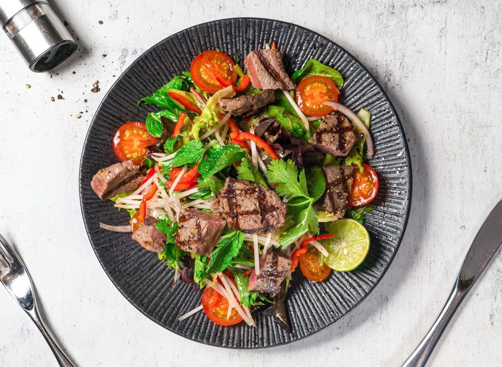 Тёплый салат с говядиной