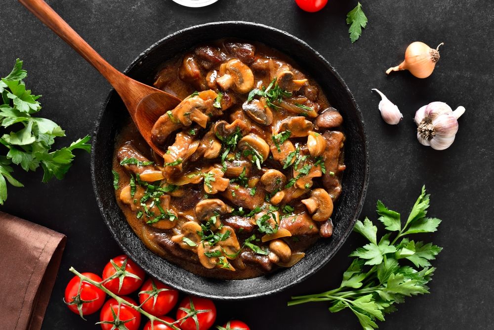 Говяжий бефстроганов с грибами